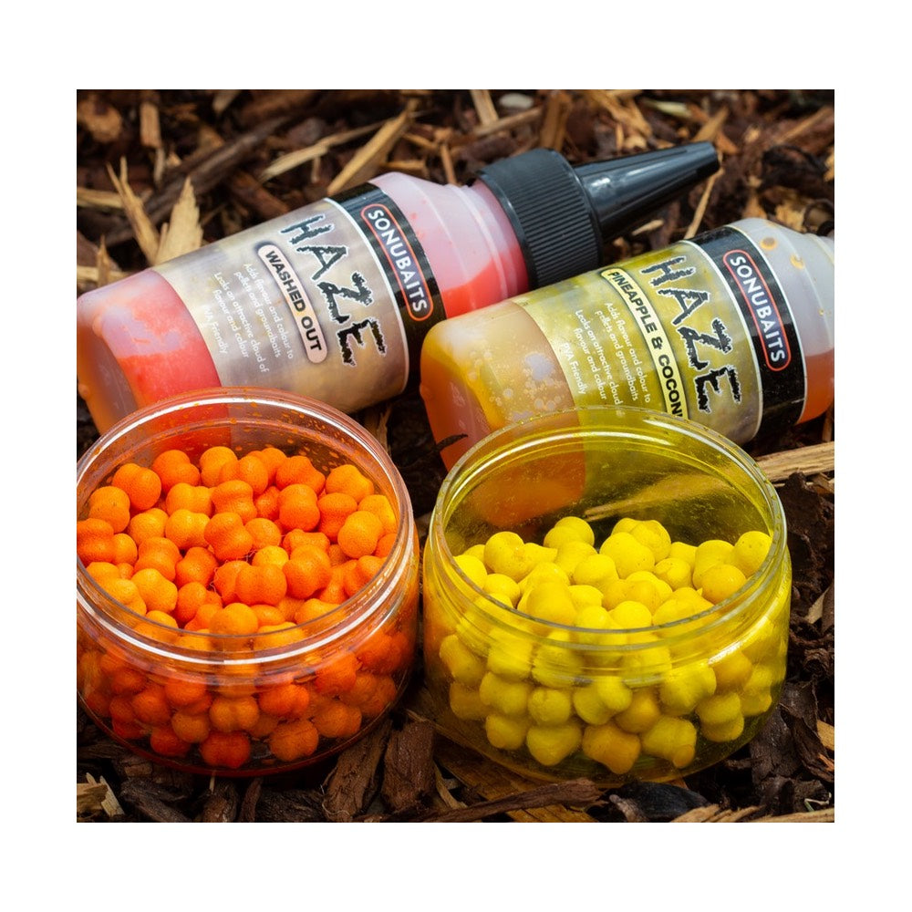 The Sonubaits Haze is a powerful liquid attractant that adds intense flavour, colour, and visibility to your bait. Designed to create a lingering cloud that draws fish in and keeps them feeding around your swim.